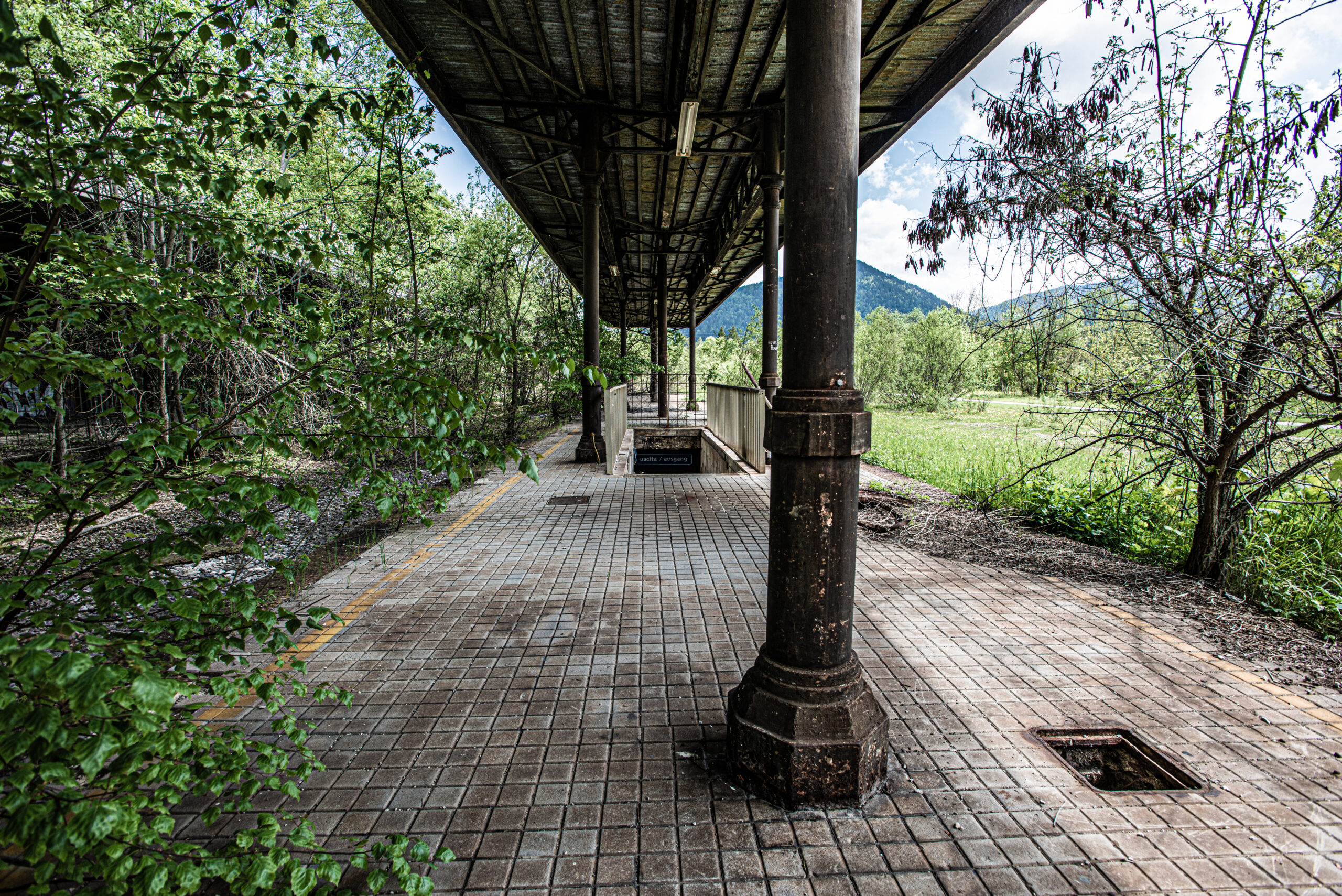 Der alte Bahnhof von Tarvis ist einer dieser Orte. Ein Gebäude, das einmal Ankunft und Aufbruch bedeutete und heute nur noch die Spuren seiner Geschichte trägt. Weiter südlich liegt Cave del Predil, ein Ort, der vom Bergbau geprägt war und dessen Häuser, Straßen und Hallen noch immer von der Arbeit erzählen, die hier über Generationen stattfand. Vieles steht leer, manches verfällt, und doch hat der Ort eine Präsenz, die man nicht ignorieren kann.